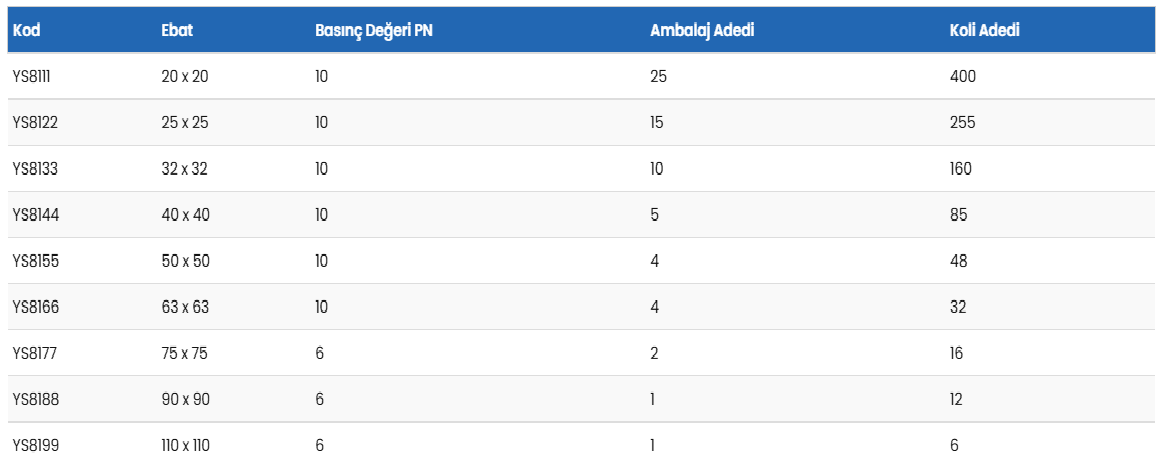 Basınç Değerleri Ø 20 mm – Ø 63 mm : PN 10 Ø 75 mm – Ø 110 mm : PN 6 Kullanım Alanları Peyzaj Sektörü Tarımsal Sulama Seralar