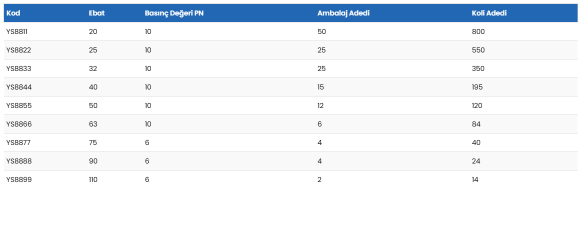 Basınç Değerleri Ø 20 mm – Ø 63 mm : PN 10 Ø 75 mm – Ø 110 mm : PN 6 Kullanım Alanları Peyzaj Sektörü Tarımsal Sulama Seralar
